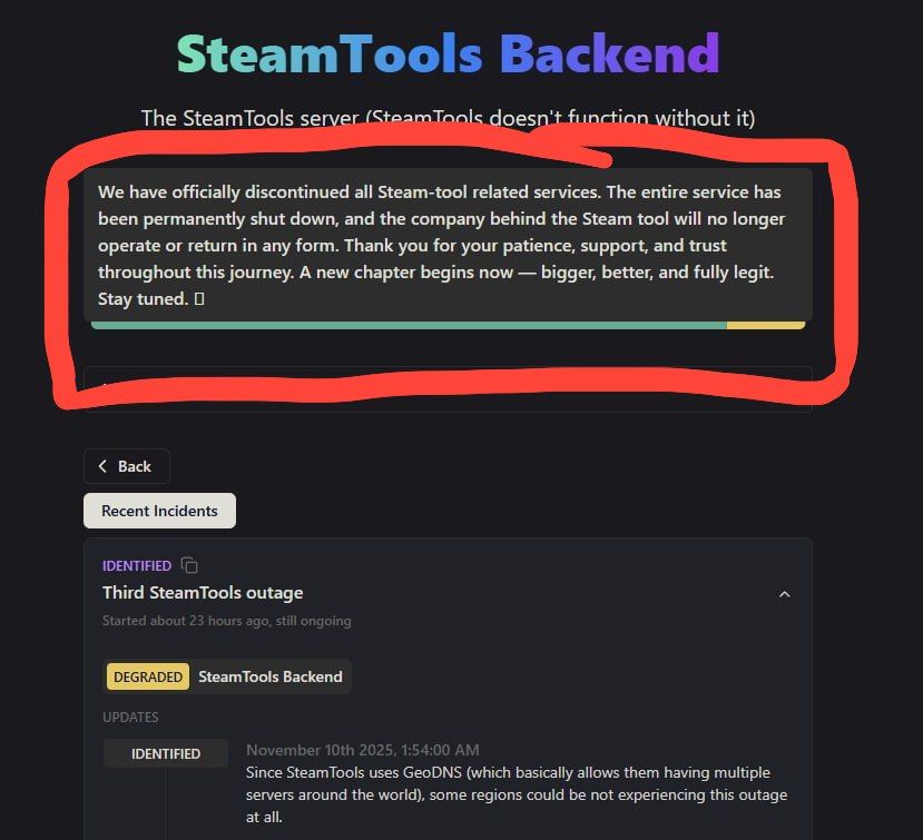 The red/orange parts are when it's detected as being downThere's no official statement from the people behind SteamTools about this yet.